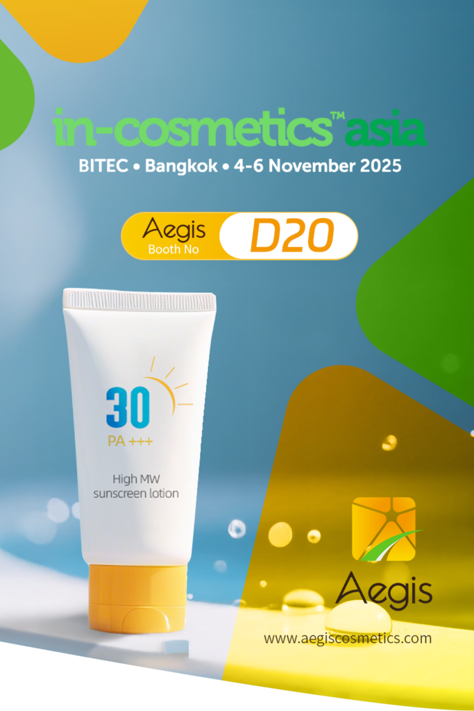 The premier event for cosmetic and personal care ingredients, in-cosmetics Asia 2025, is just around the corner! Aegis is excited to showcase our cutting-edge UV protection innovations from November 4–6 at BITEC, Bangkok.